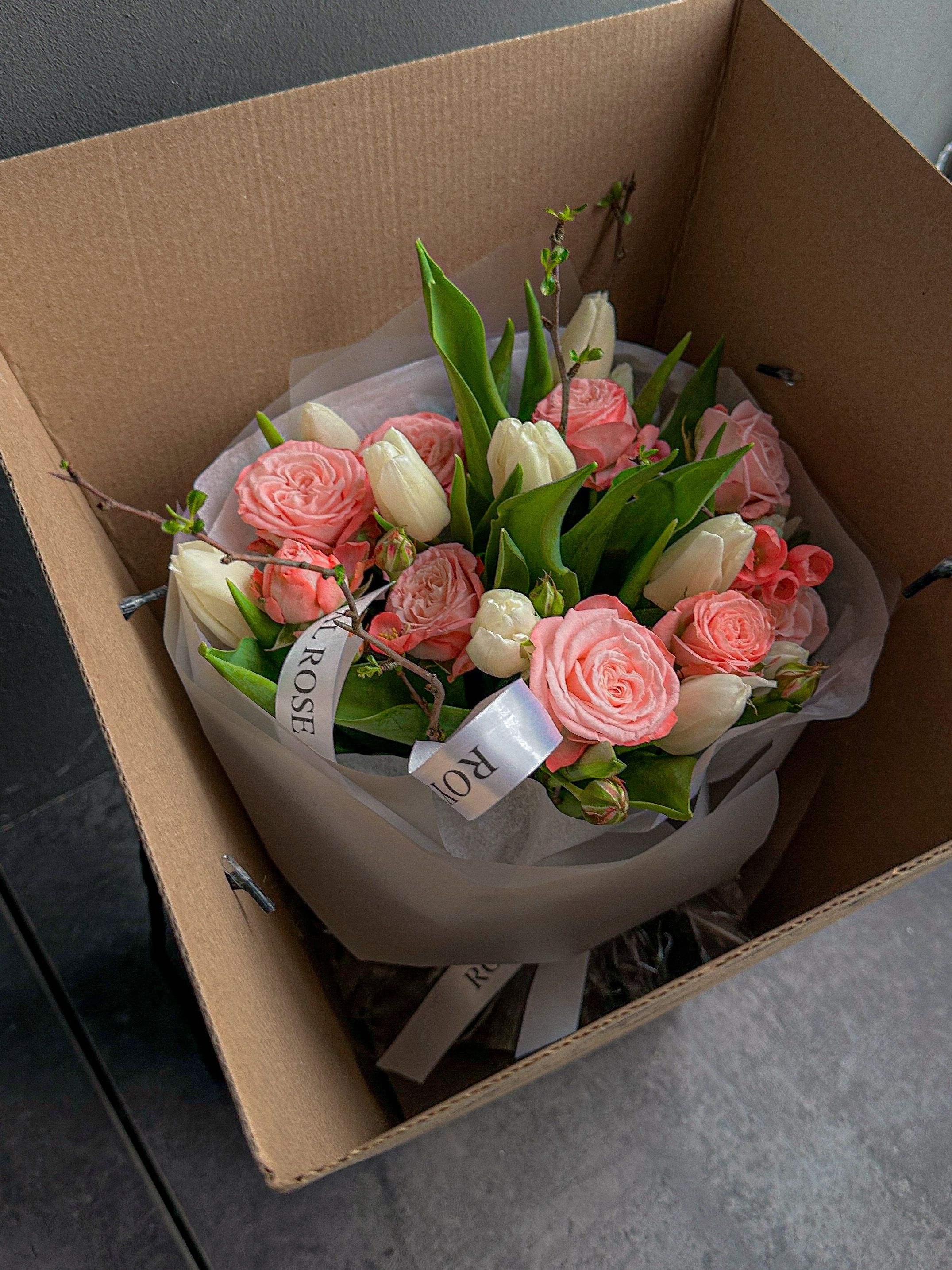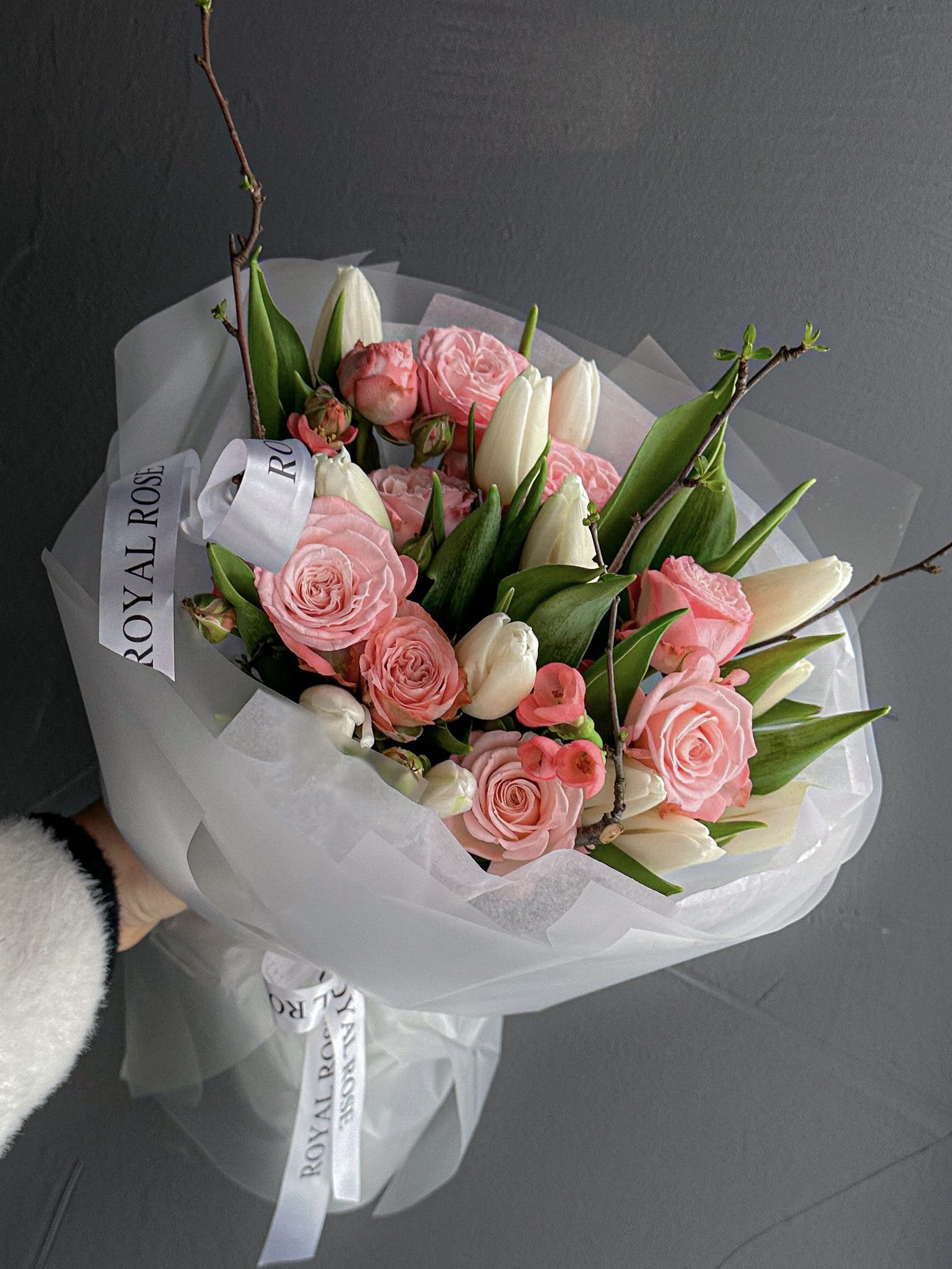 Букет «SPRING PEONY ROSE» из пион-ых роз и тюльпанов