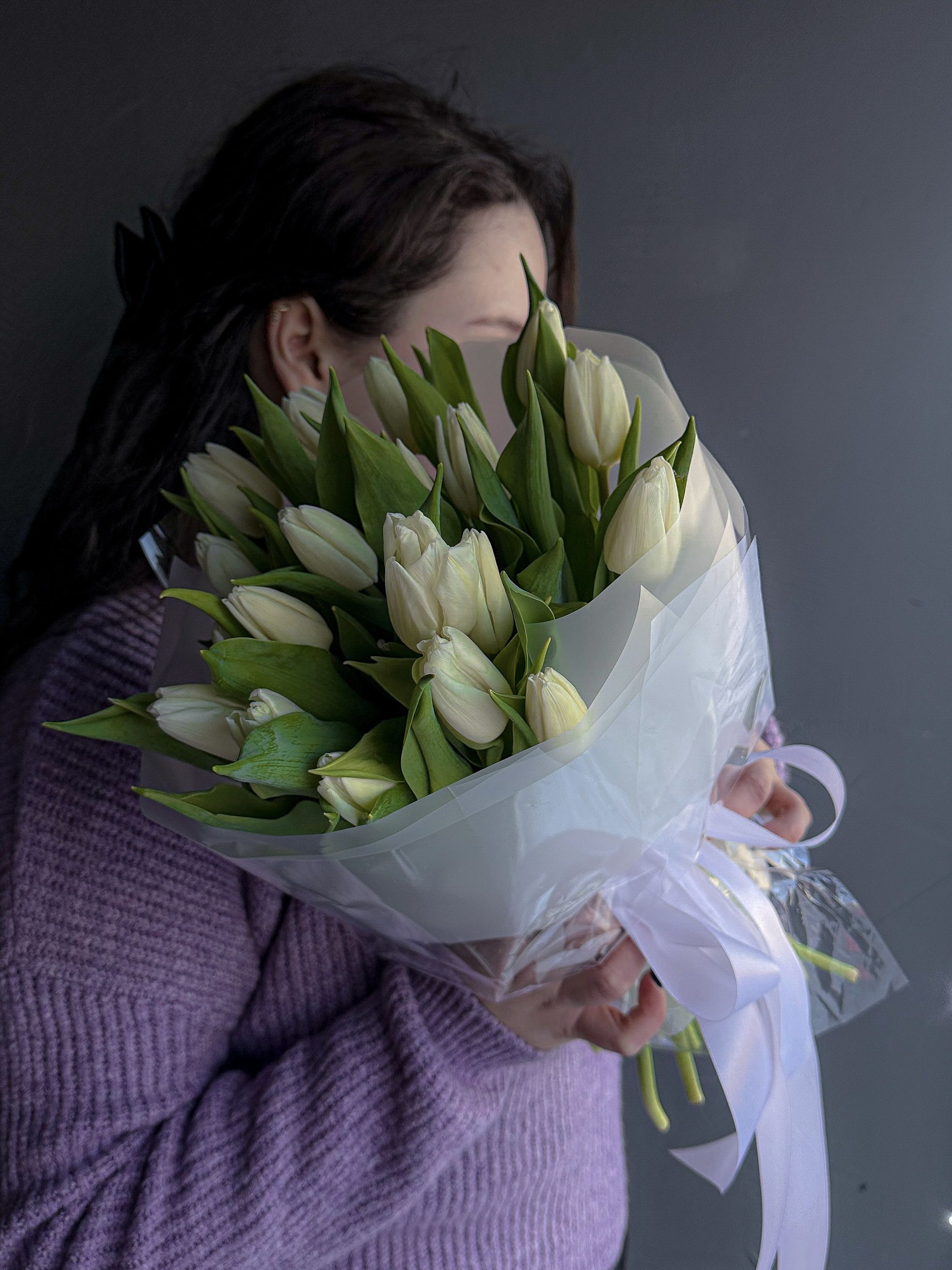 «Minimalism» из молочно-белых тюльпанов 19 шт