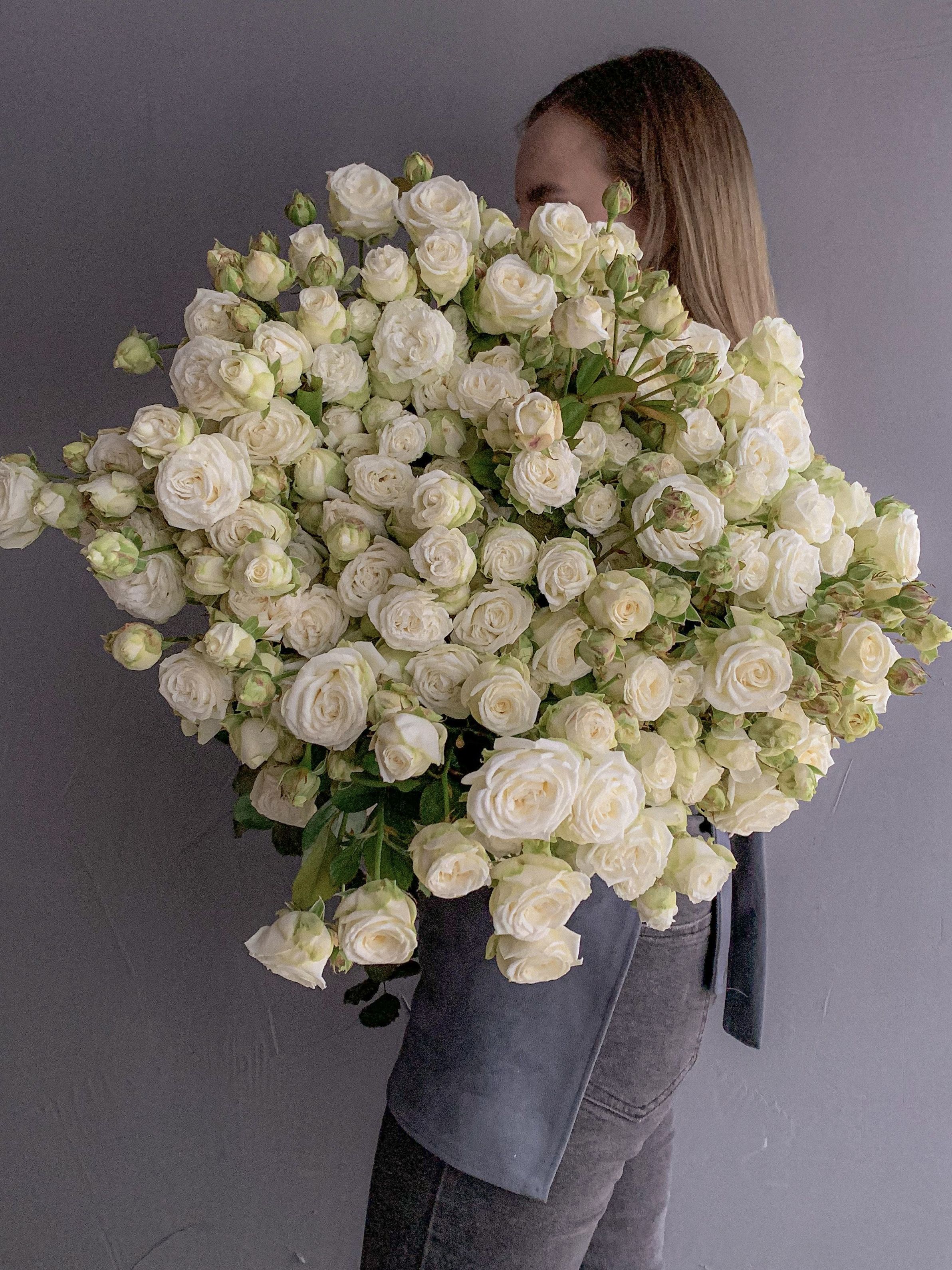 Большой букет пионовидных белых роз Роскошный букет из белых кустовых роз с доставкой 19 500 ₽ Оформить заказ Роскошный букет из белых кустовых роз с доставкой