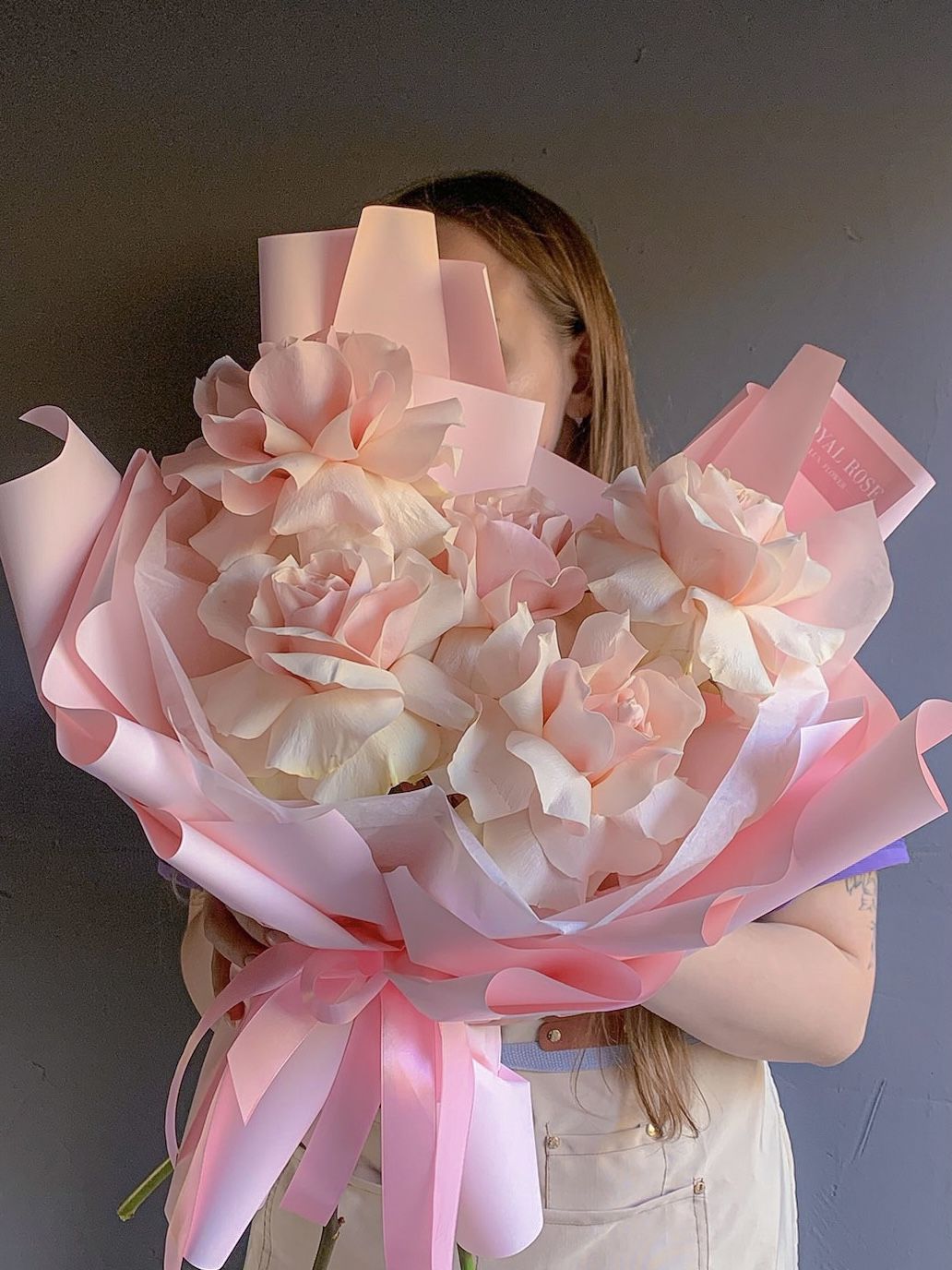 БУКЕТ РОЗОВЫХ РОЗ И ЗЕЛЕНИ В ОФОРМЛЕНИИ