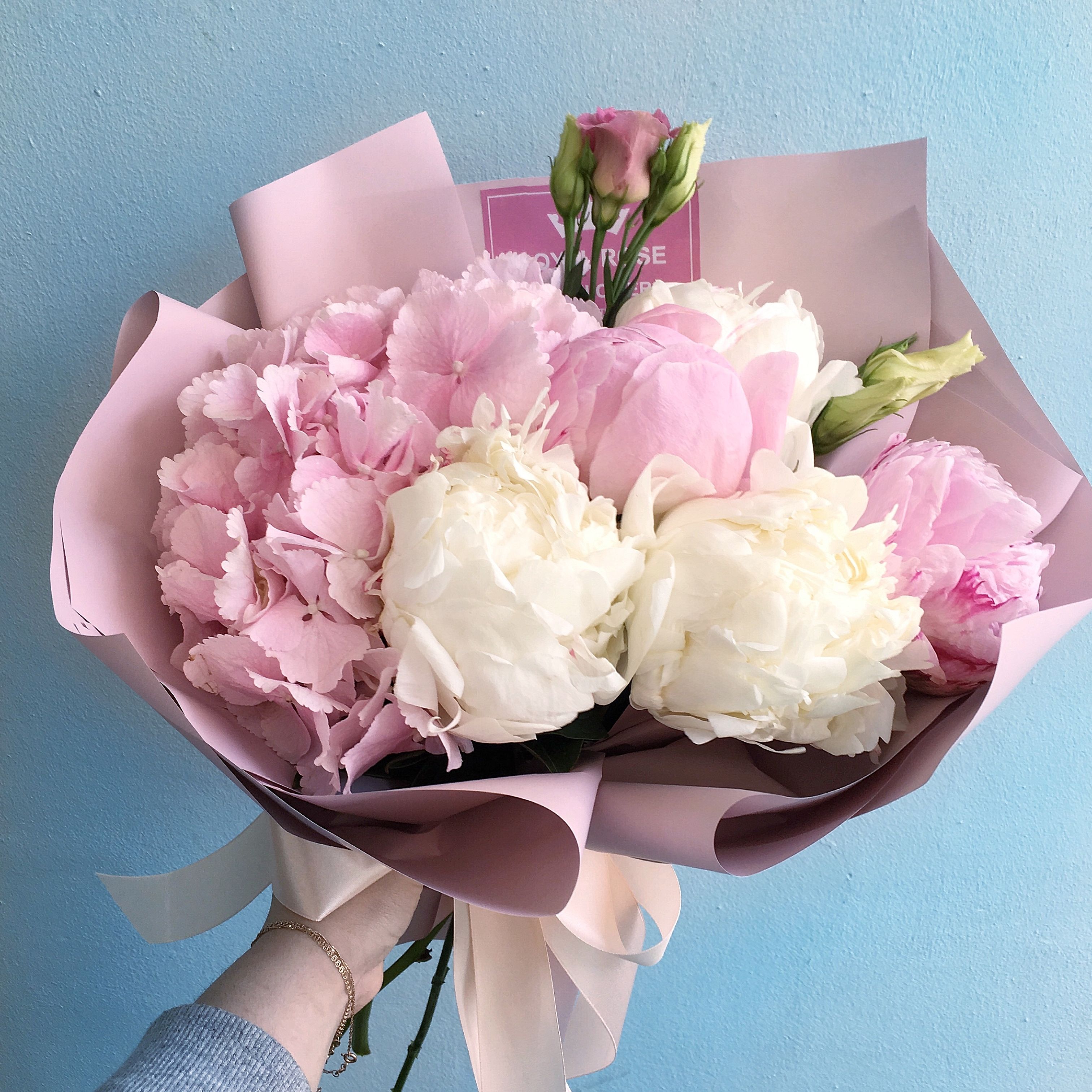 Букет с пионами и гортензией