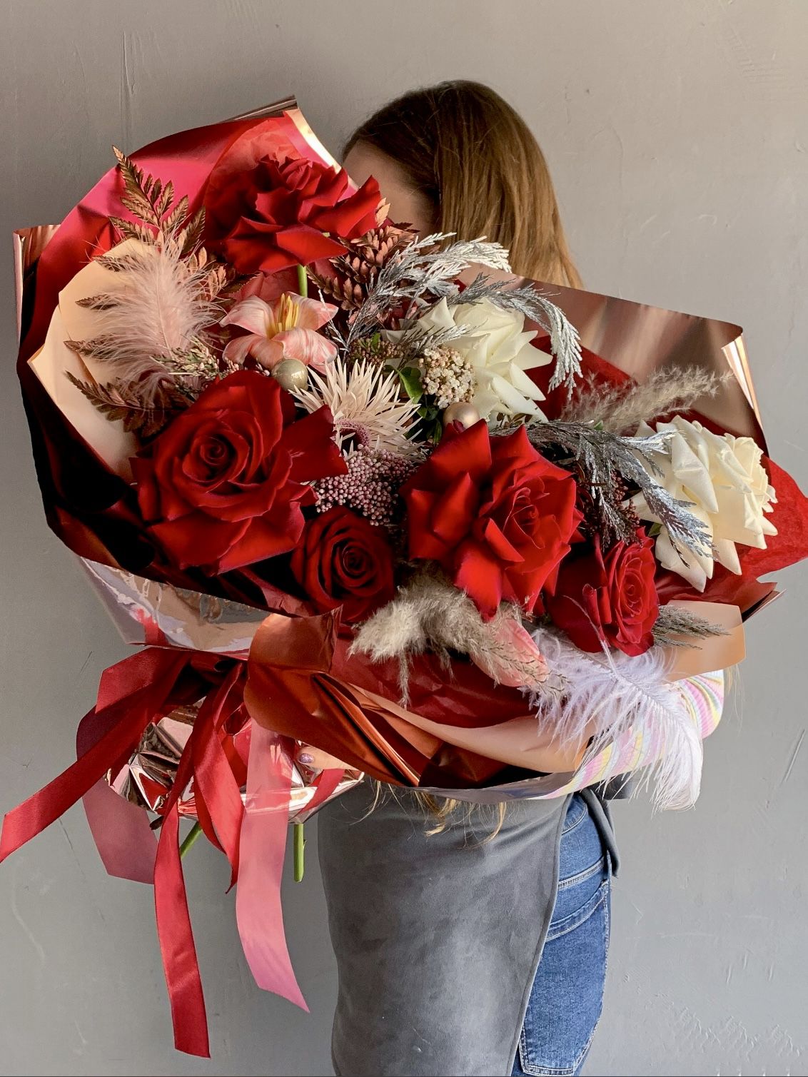 Букет с пионовидными тюльпанами и розами