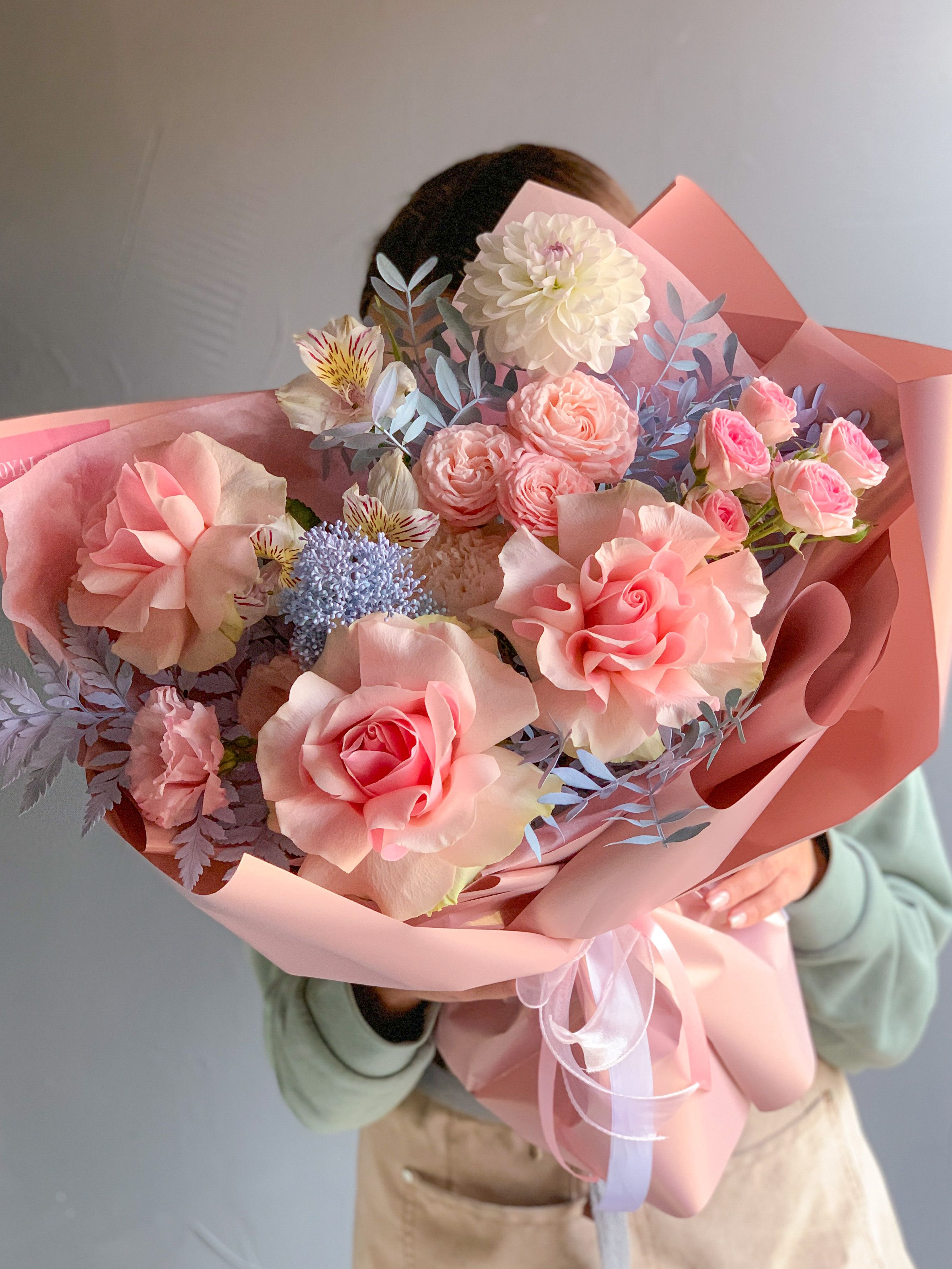 В букете "Сказочные видения" используются только самые качественные и свежие розы, оттенок которых яркий и насыщенный. Пастельные розовые оттенки позволяют создать мечтательное настроение и уноситься в мир фантазий и романтики.
