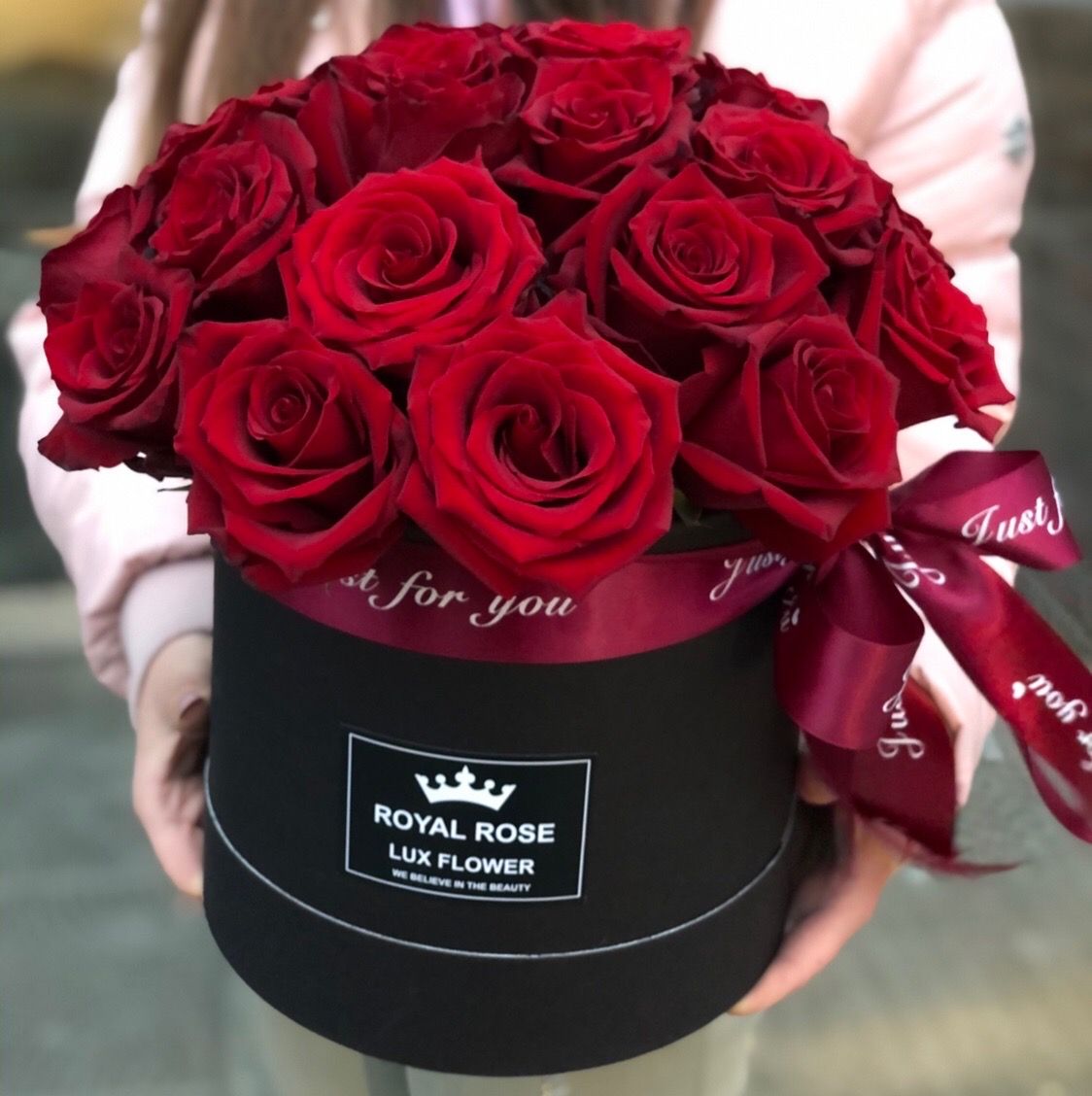 Стильная черная коробочка и красные розы - идеальное сочетание для любого события. Строгая и лаконичная композиция.