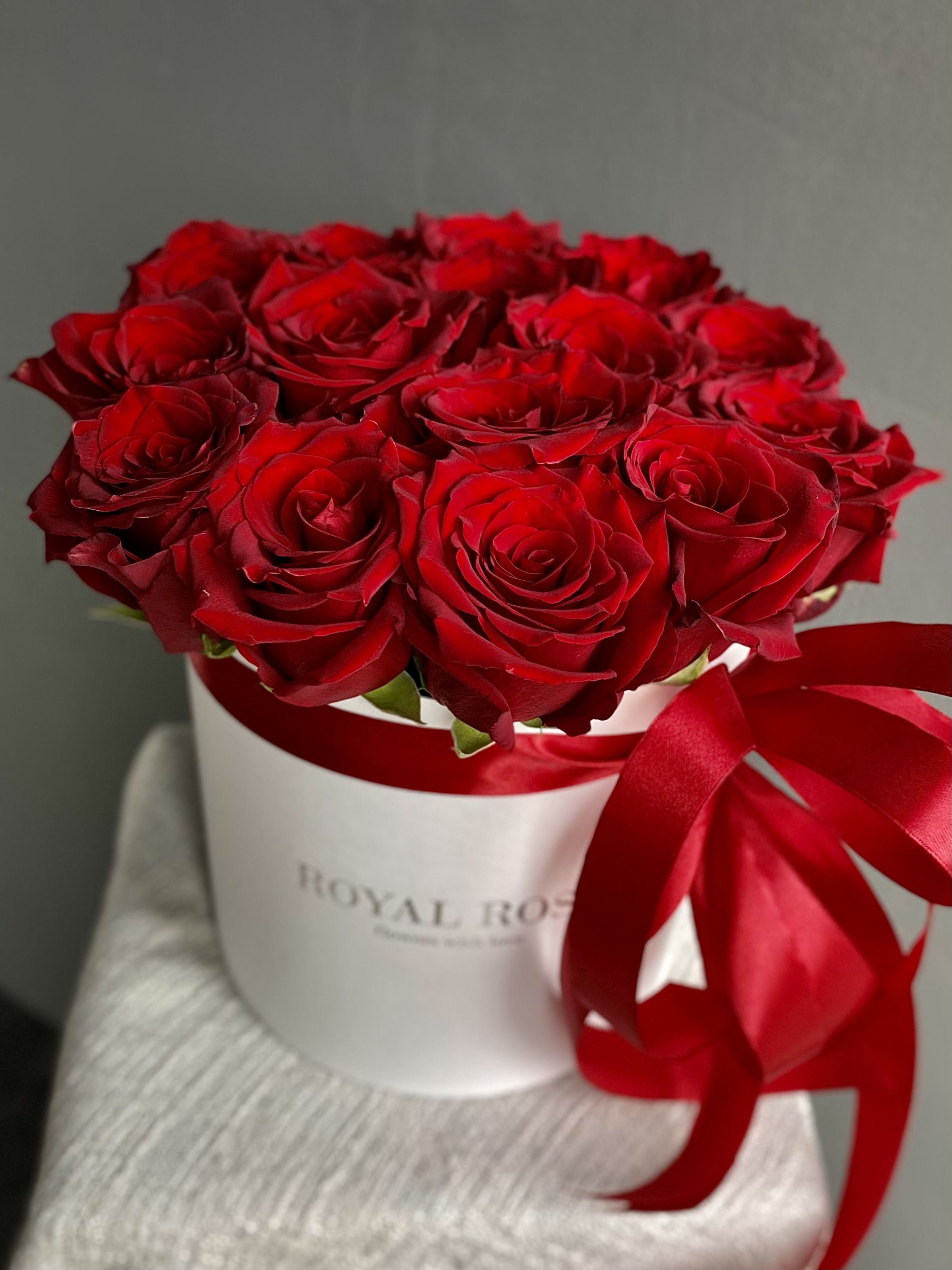 Побалуйте своих любимых невероятно красивой и стильной шляпной коробочкой от цветочного салона Royal Rose. Красные розы как нельзя лучше сочетаются с коробочкой голубого, черного или бежевого цвета. Поверьте, получатель точно оценит по достоинству такой потрясающий подарок. Розы, оформленные в коробку, выглядят роскошно и дорого - согласитесь, это же важно?) Наш флорист устанвливает цветы в специальную флористическую губку, которая подпитывает розы водой. Поэтому для Вашего букета даже не понадобится ваза! Ваш подарок наверняка займет самое достойное и заметное место в доме или офисе. Наши цветы всегда вынуждают любоваться их красотой, не оставляя шансов на сопротивление). Позвонив нашему главному флористу-менеджеру, вы можете обсудить цвет и размер коробочки, а так же выбрать другое количество роз и размер.