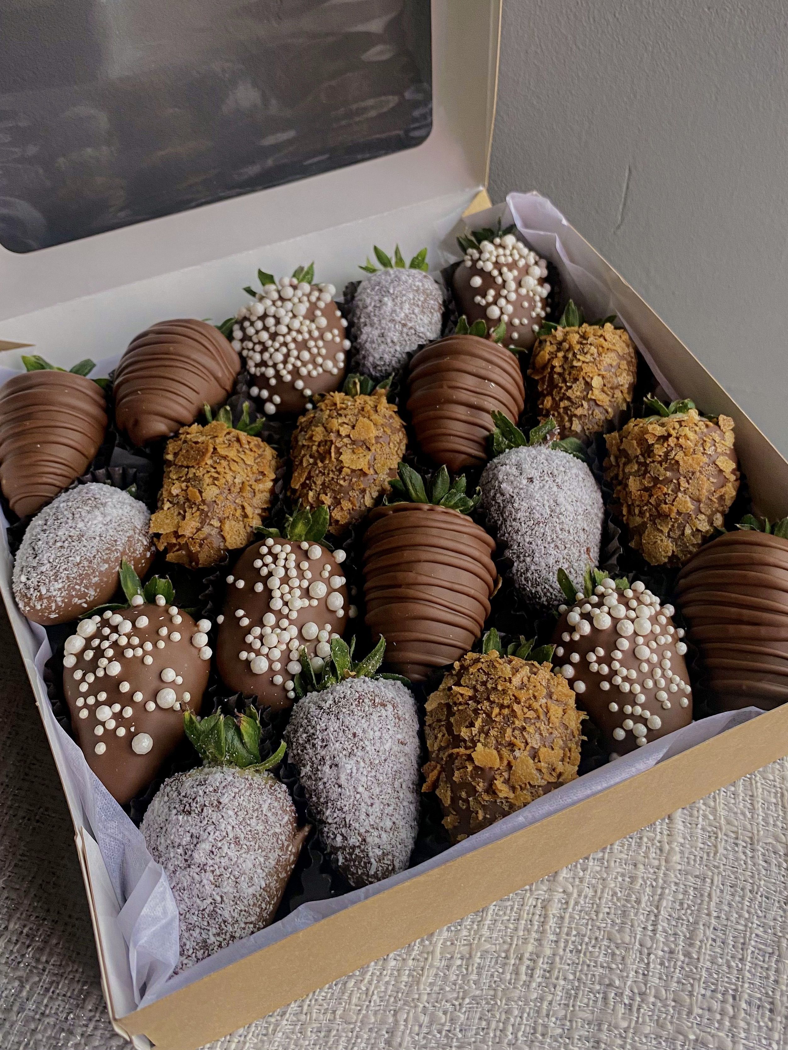 Выберите набор клубники в шоколаде "Молочный" и наслаждайтесь великолепным сочетанием свежести и шоколадного блаженства.