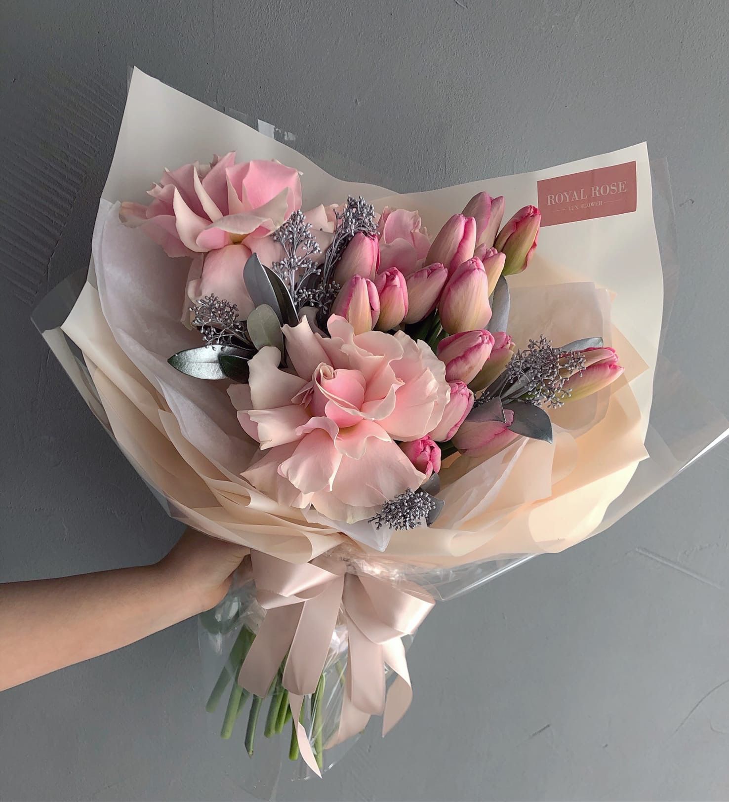 Авторский букет "Pink Snow" Розовые тюльпаны, серебряная скимия, кружевные розы. 6 850 ₽ Оформить заказ Розовые тюльпаны, серебряная скимия, кружевные розы. Дополнения к букетуОткрытка к букету 120 ₽рекомендуемФирменная VIP открытка к букету 100 ₽