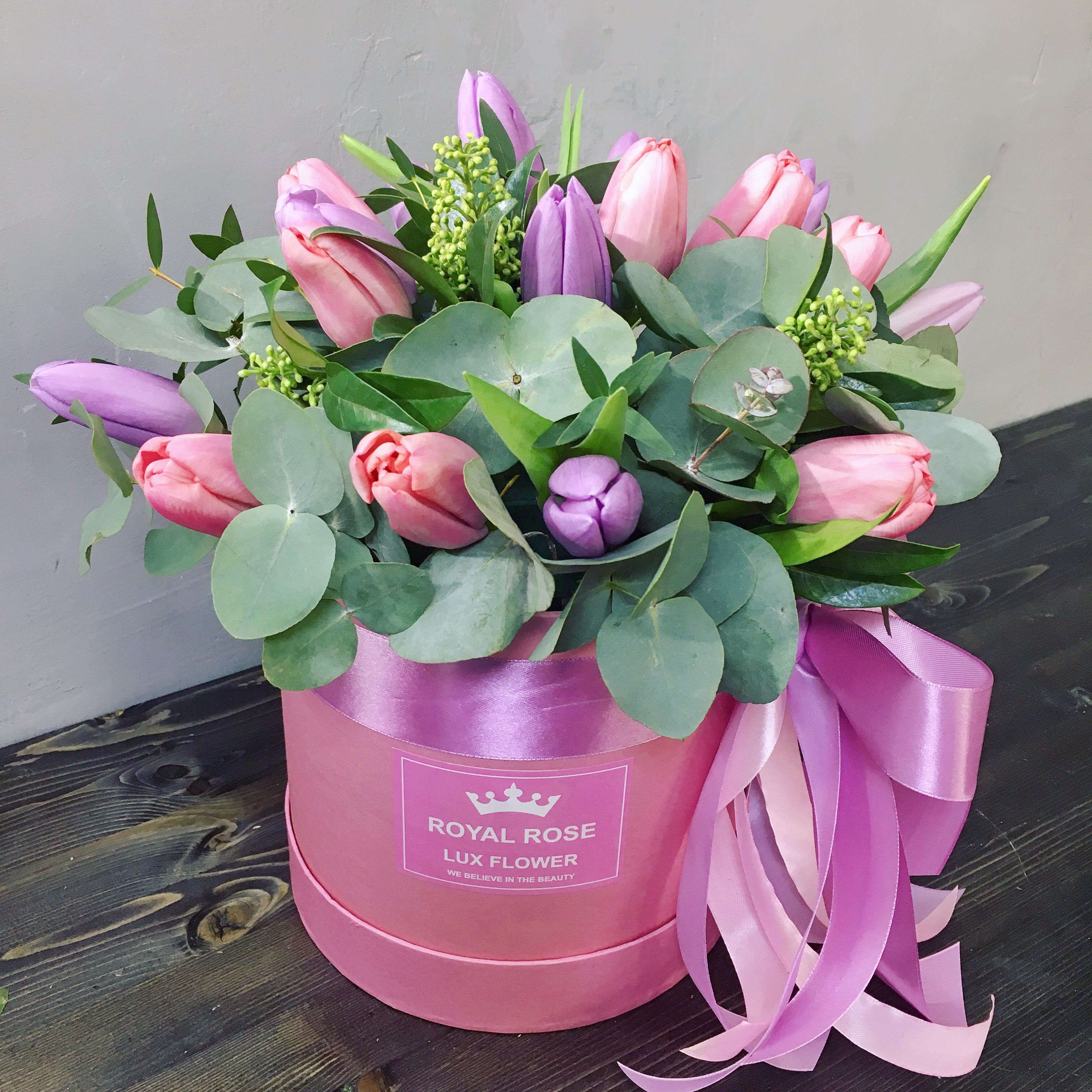 Новинка в нашей цветочной студии, специально к 8 марта мы сделали лучшее предложение на тюльпаны в коробке - цветочная композиция с премиум тюльпанами и экзотическим эвкалиптом!
