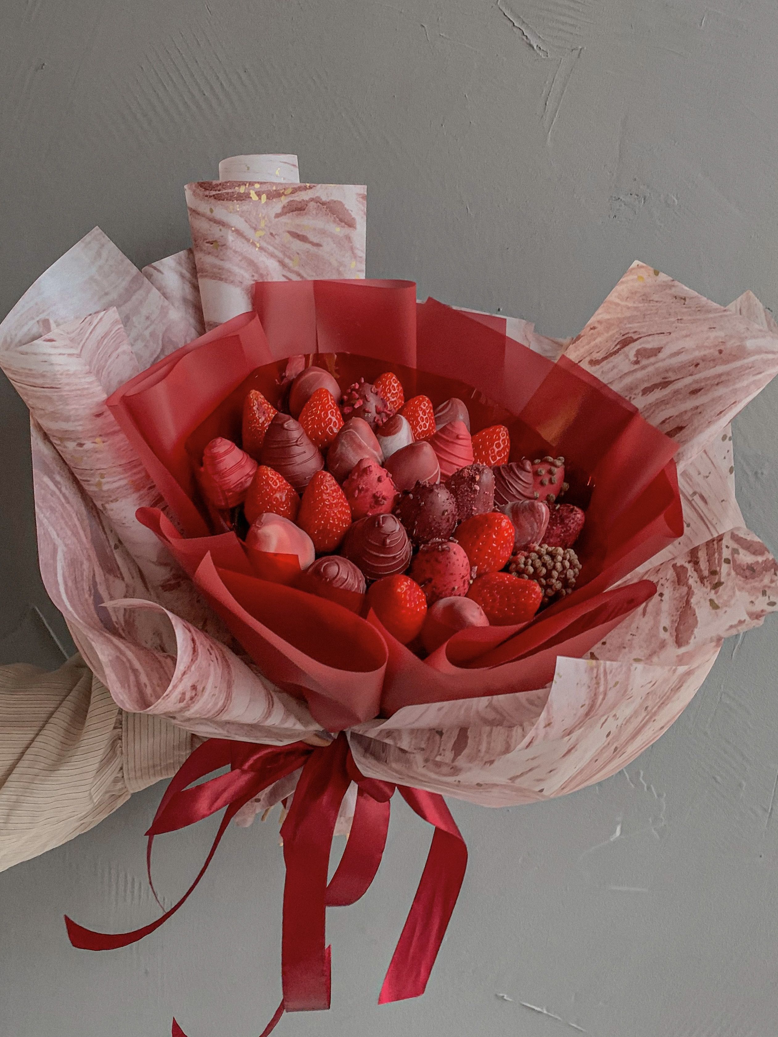 Роскошный букет из вкуснейшей клубники в бельгийском шоколаде в стильном мраморном оформлении